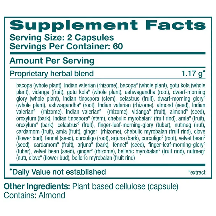 The Bacopa in MindCare supports mental alertness and clarity of thought. Gotu Kola calms occasional restlessness and supports normal cognitive effects like learning and concentration, and Ashwagandha has been used throughout history to support physical and mental energy to provide support for busy people and stressed-out minds.*